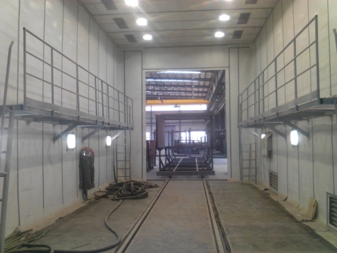 • 整個項目是對輕軌軌道等工件進行噴砂、噴漆、烤漆及空氣除塵(濾筒式)、廢氣凈化處理(活性炭吸附+催化燃燒系統),在確保噴涂質量及效率的同時注重環境保護,實現人與自然和諧發展;涂裝生產線PLC控制,自動化、智能化程度高!